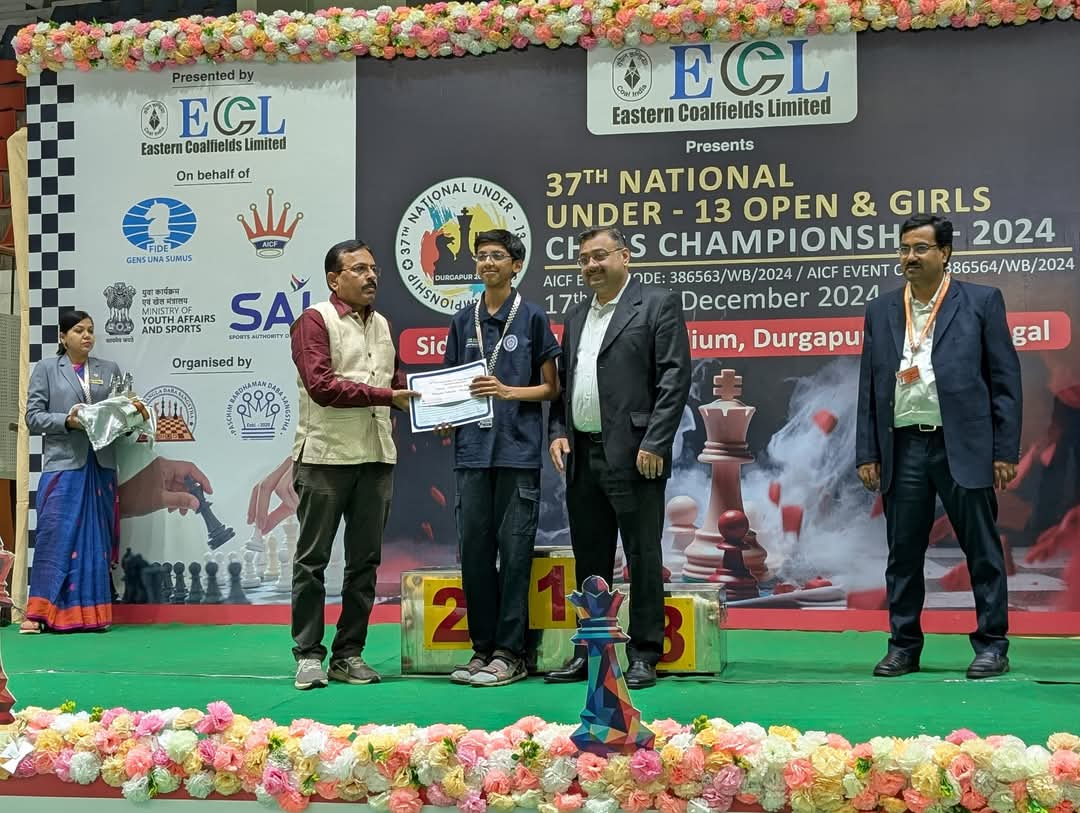 Nihaan Pohane of Class -7,Mount Carmel convent High School, Chandrapur has achieved an impressive 13th rank in the 37th National Under-13 Open Chess Championship 2024, held in West Bengal.